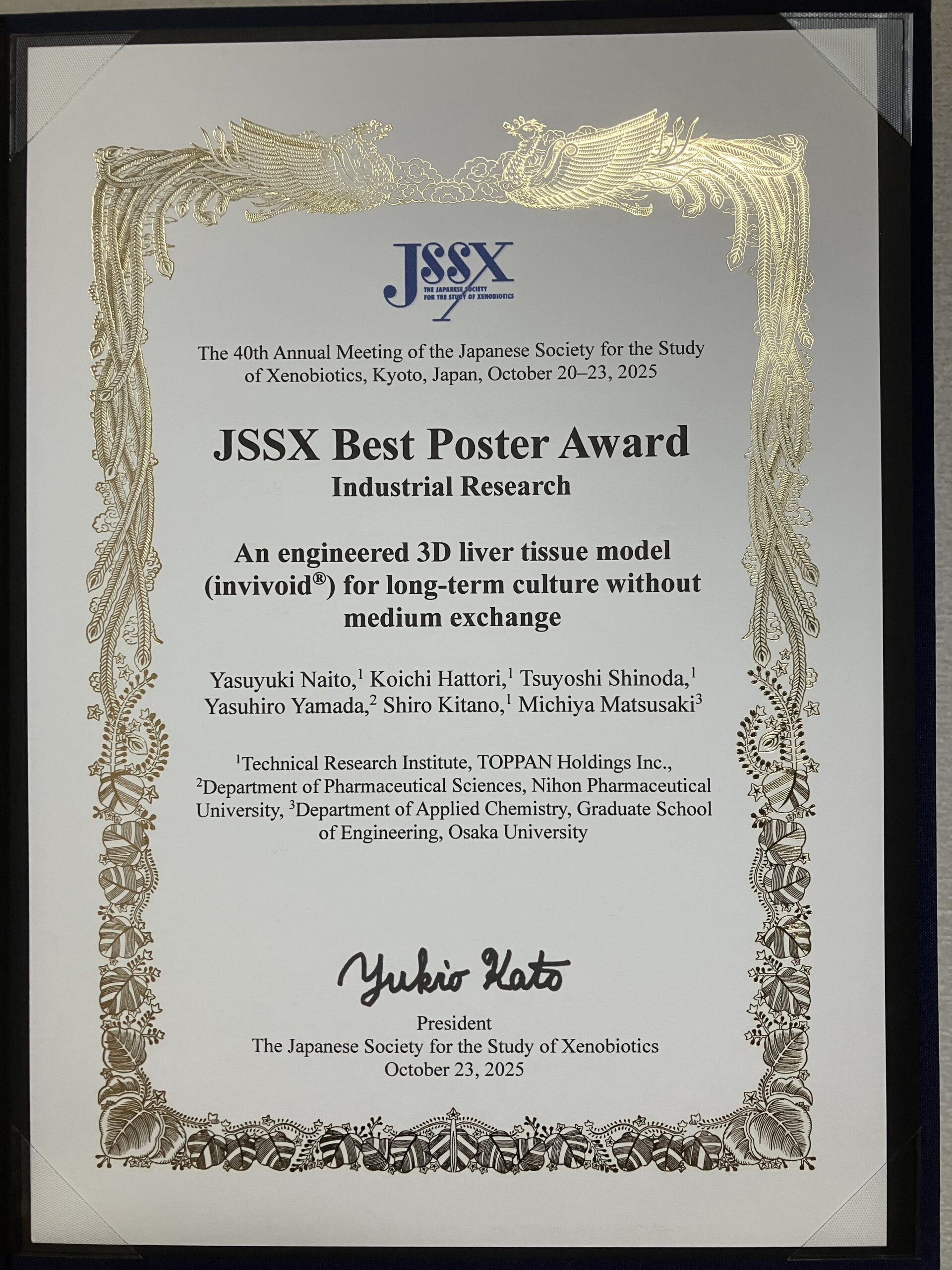 人工三次元肝臓組織(invivoid®)」の発表が、学会のベストポスター賞を受賞しました!